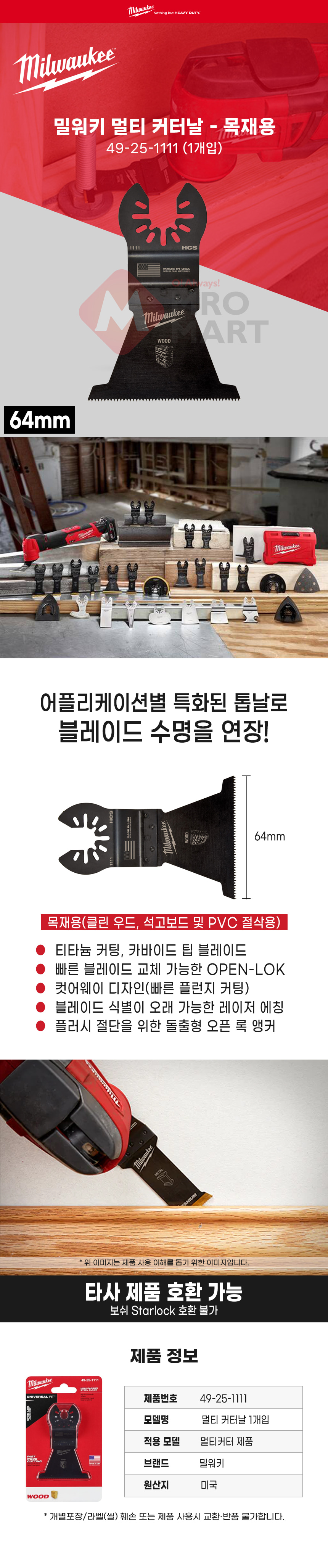밀워키 멀티 커터날 64mm 49-25-1111 목재용 나무 절단 커팅 컷팅
