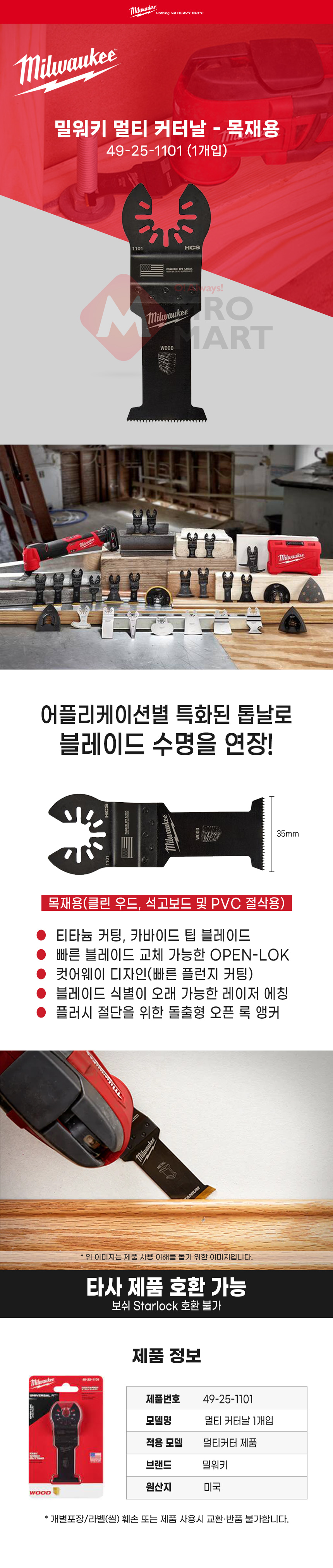밀워키 멀티 커터날 35mm 49-25-1101 목재용 나무 절단 커팅 컷팅
