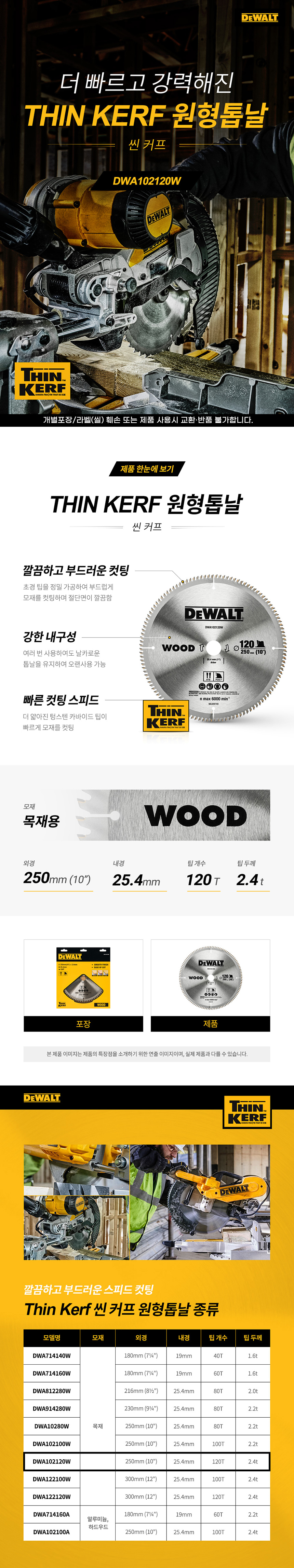 디월트 씬 커프 DWA102120W 원형 톱날 목재 250mm 10인치 120T