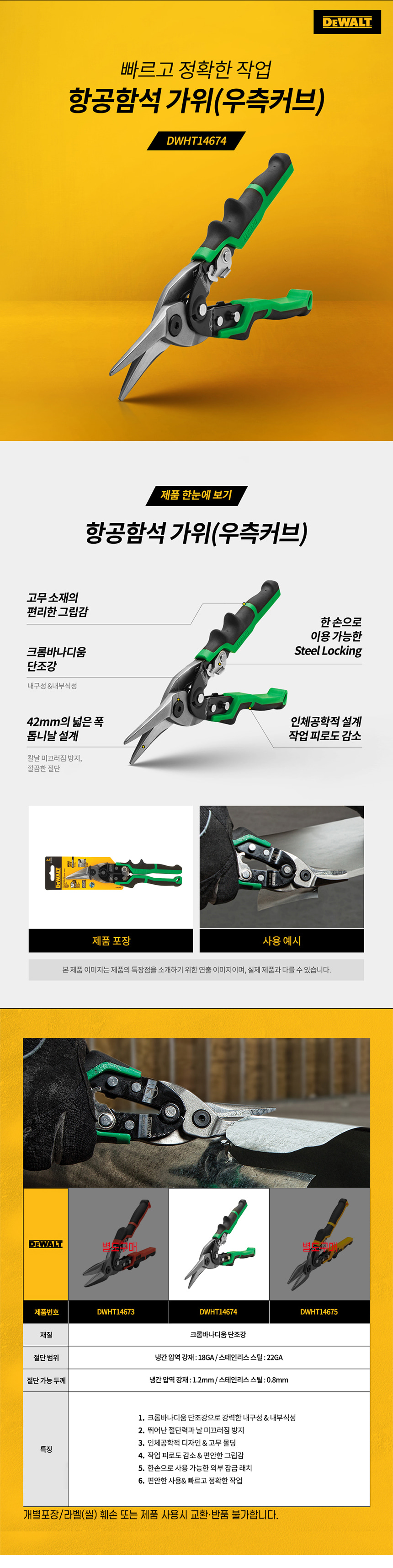 디월트 항공 함석 가위 DWHT14674 우측 커브