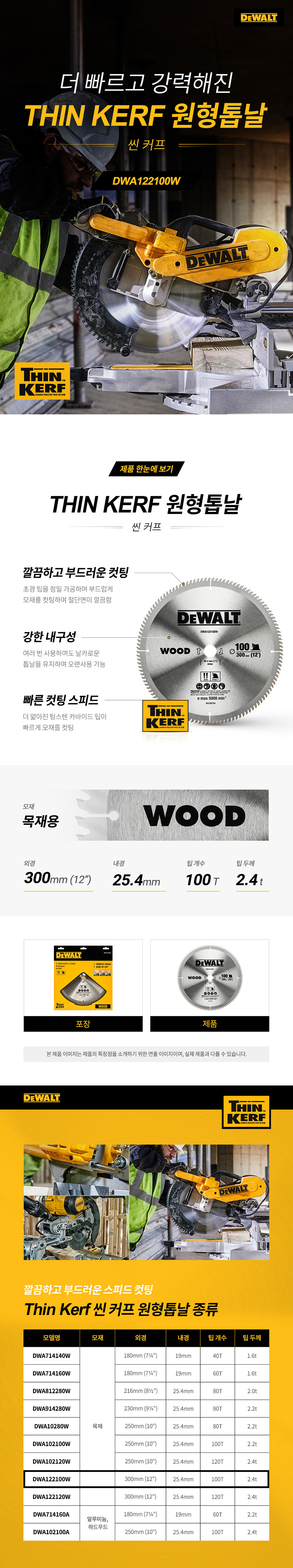 디월트 씬 커프 DWA122100W 원형 톱날 목재 300mm 12인치 100T