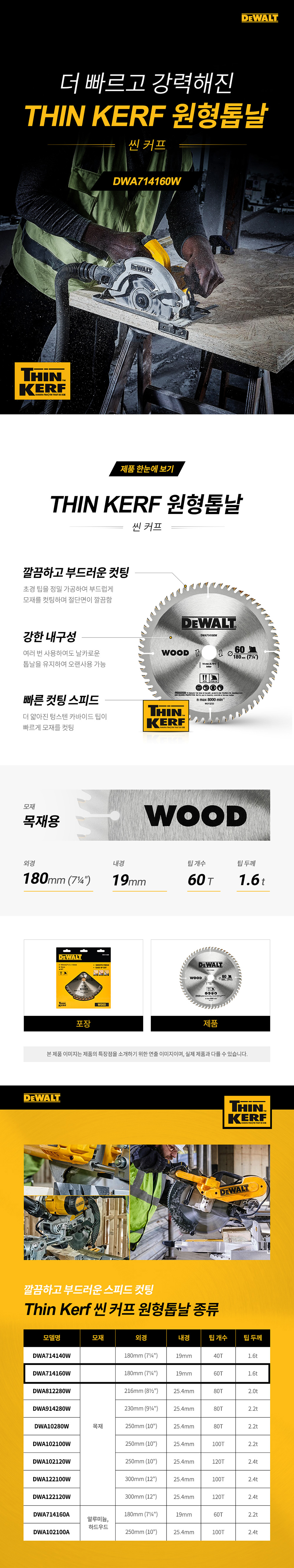 디월트 씬 커프 DWA714160W 원형 톱날 목재 180mm 7인치 60T