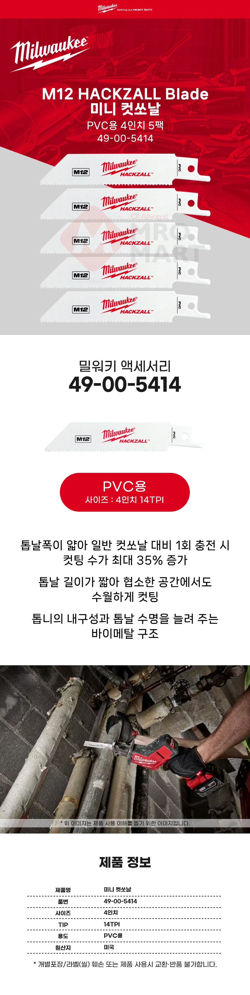 밀워키 4인치 미니 컷쏘날 5개입 49-00-5414 PVC용