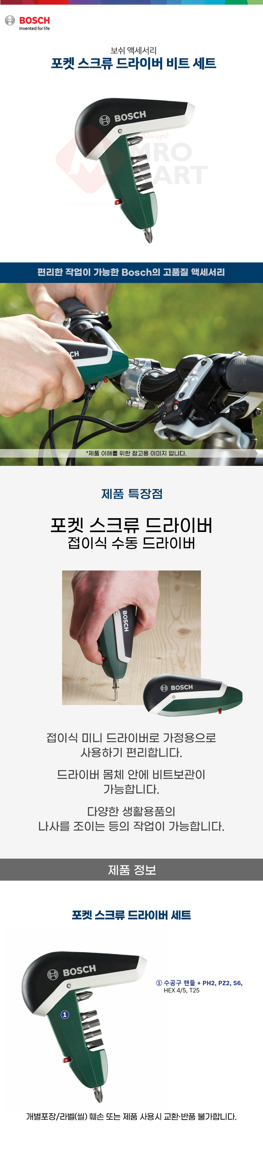 보쉬 포켓 스크류 드라이버 세트 2607017180 접이식 수동 수공구