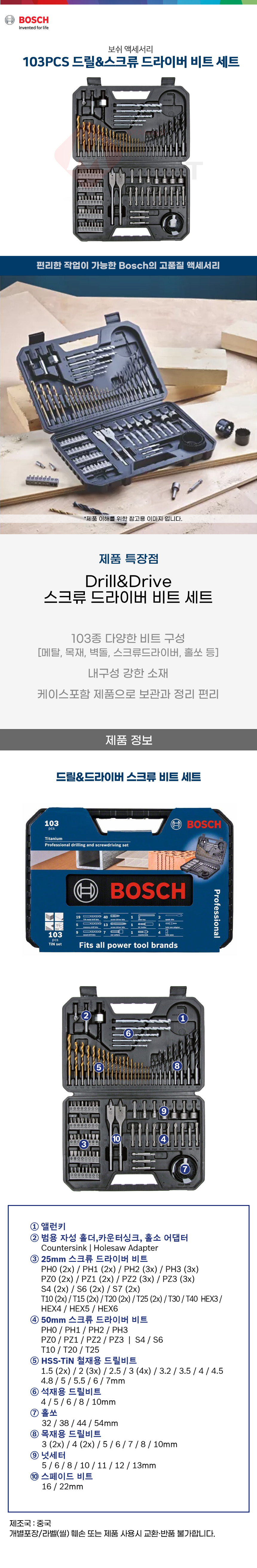보쉬 드릴 드라이버 스크류 비트 세트 103PCS 2608594070