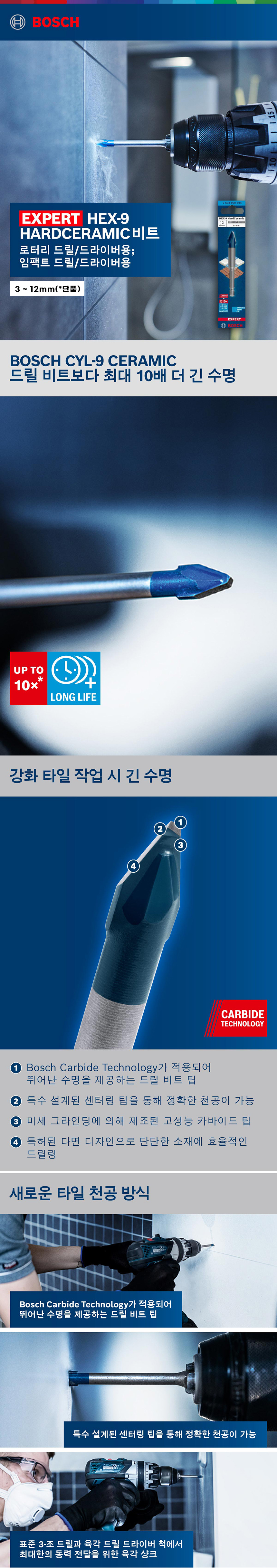 보쉬 EXPERT HEX-9 육각 하드 세라믹 드릴 비트 3x90mm 2608900587 타일 유리