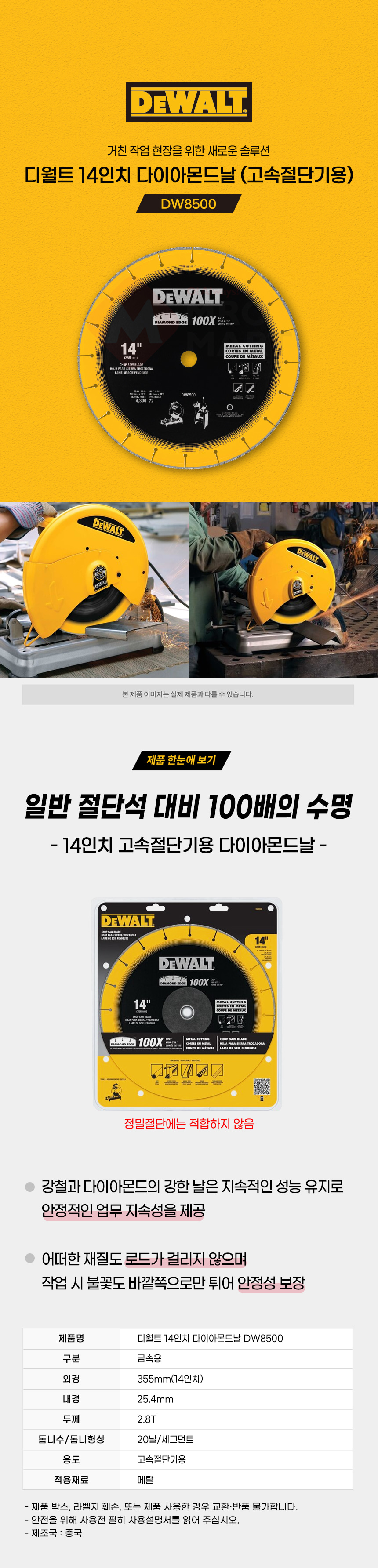 디월트 DW8500 다이아몬드날 14인치 고속절단기용 절삭 절단 금속용