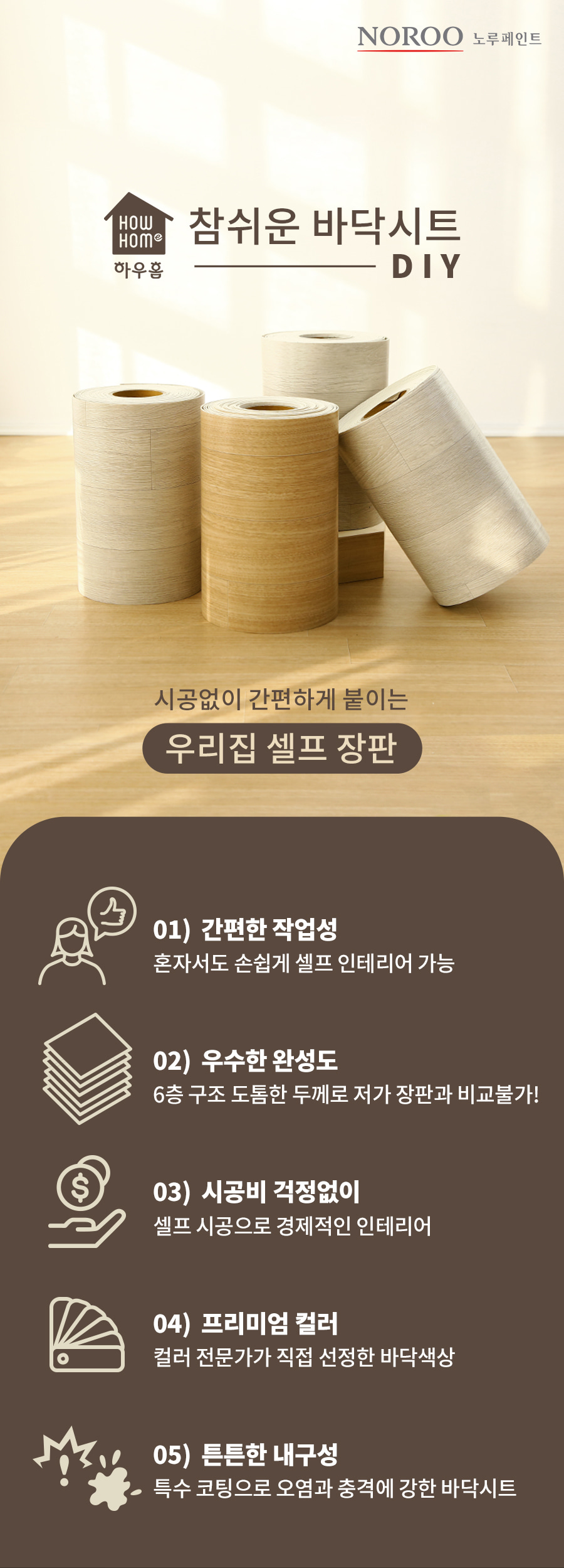노루페인트 노루표 하우홈 참쉬운 바닥 시트 30cmX11m 1롤 DIY 시트지 접착 셀프 시공 마루 장판 보수