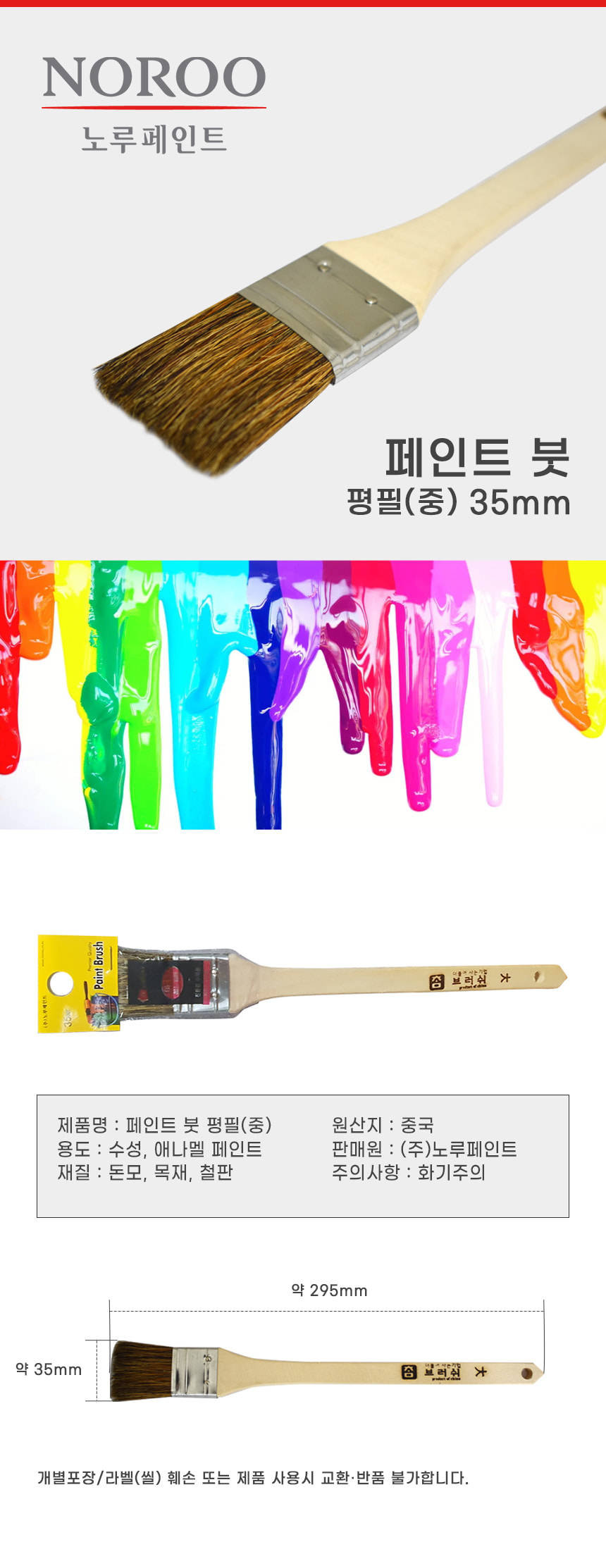 노루페인트 노루표 페인트 붓 평필 중 35mm 브러쉬 페인팅 막붓 셀프 용품