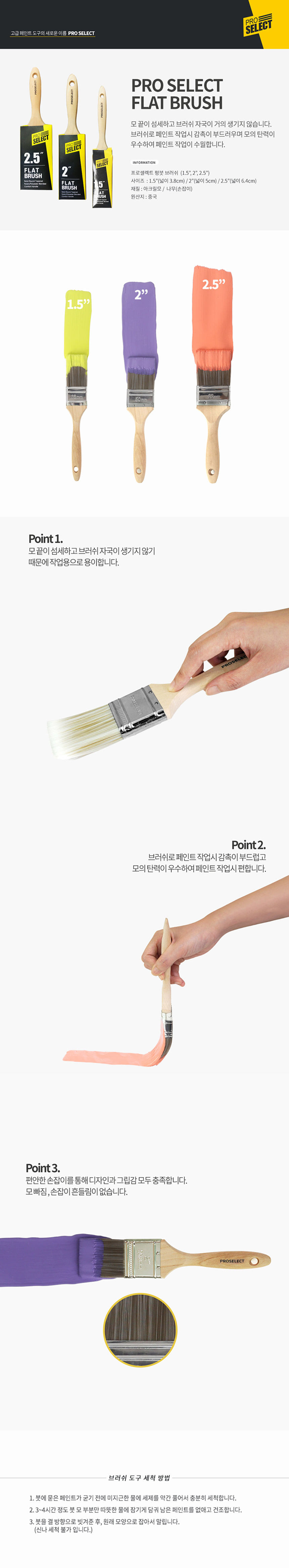 노루페인트 노루표 프로셀렉트 플랫 브러쉬 2인치 평붓 페인트 붓 셀프 페인팅 용품
