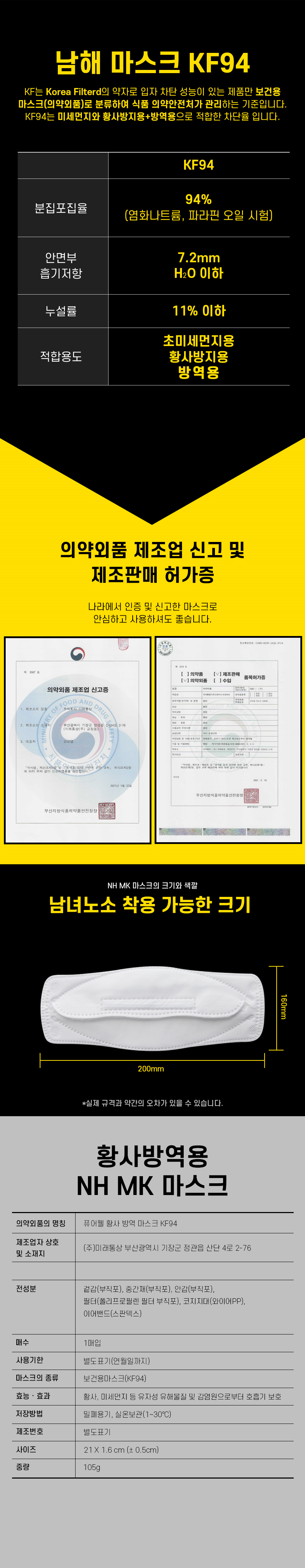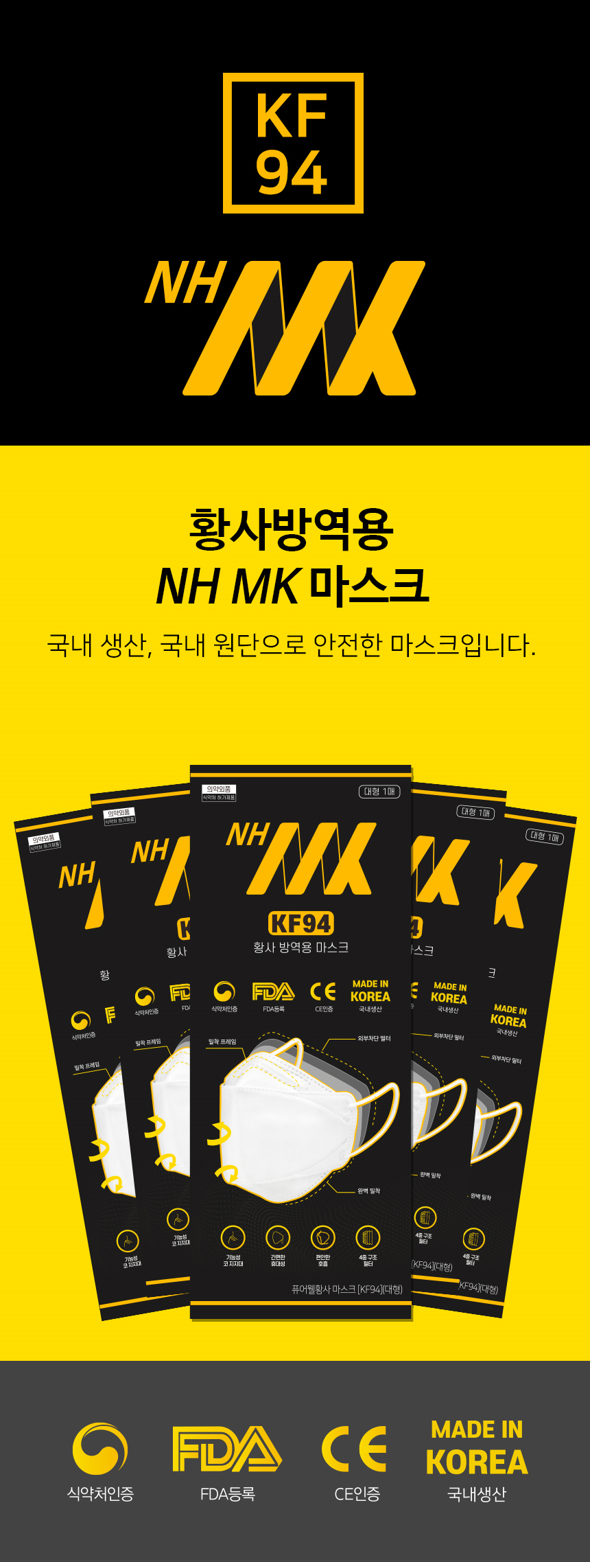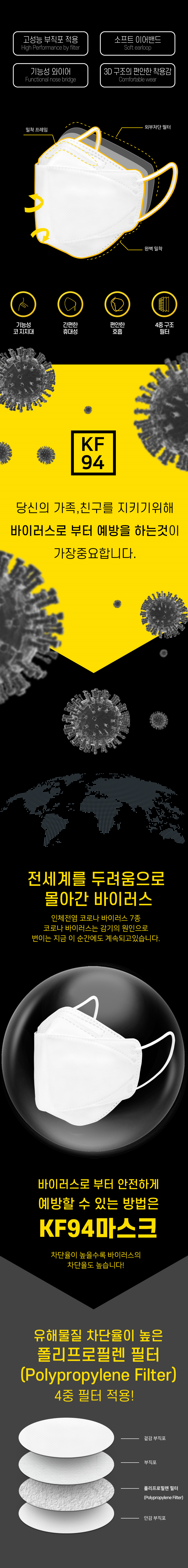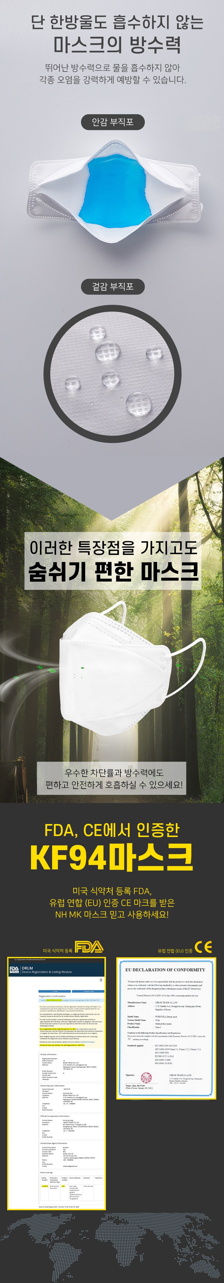 MK KF94 황사 방역용 마스크 대형 흰색 1매 개별포장 국산
