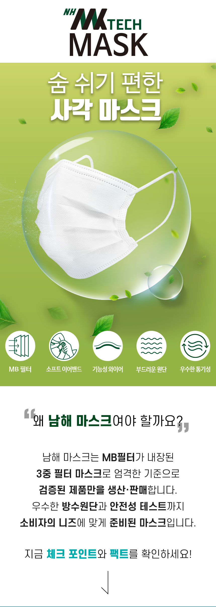 국산 MK TECH 일회용 3중 MB필터 부직포 마스크 50매입