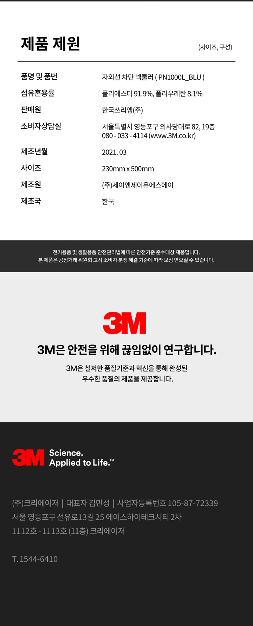 3M 넥쿨러 PN1000L 멀티스카프 자외선차단 여름용