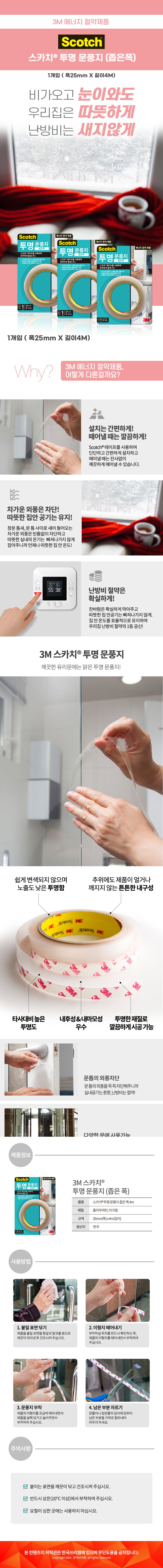 3M 스카치 투명 문풍지 좁은폭 4M 2360