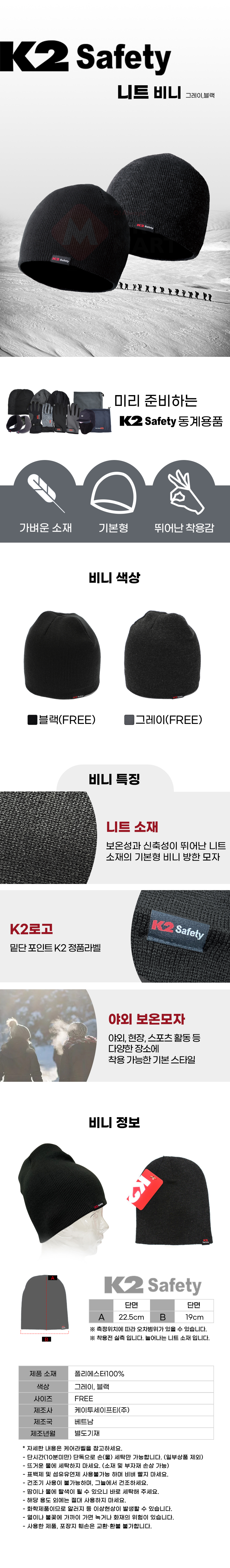 k2 비니 FREE 블랙 그레이 니트 방한모 겨울 겨울용 모자 기모 야외 방한 등산 스키 스포츠