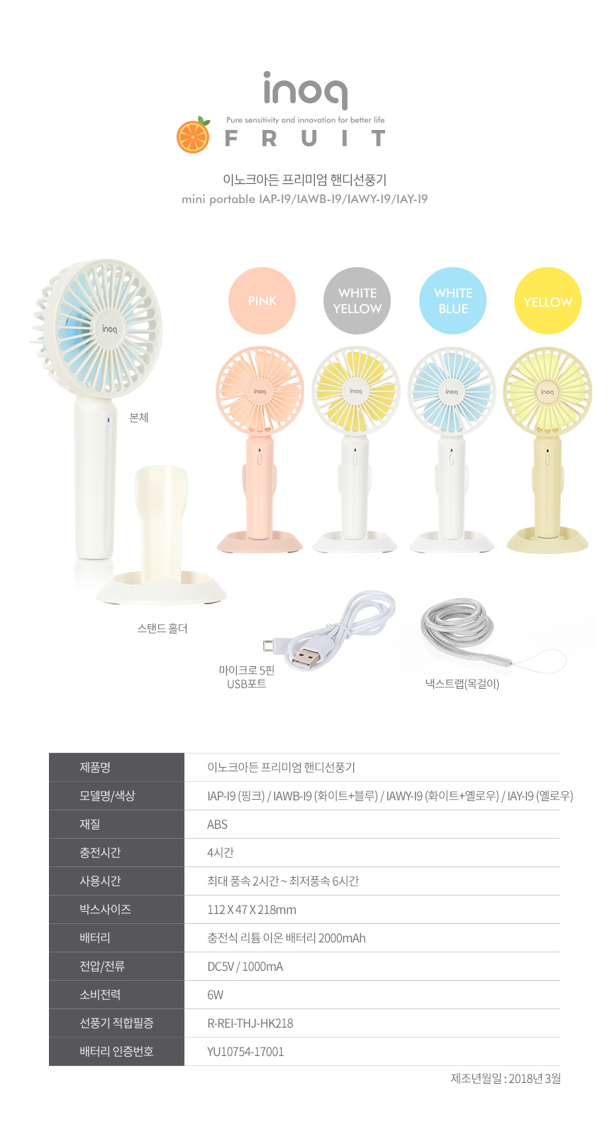 이노크아든 핸디선풍기 휴대용선풍기 소형선풍기 미니선풍기 KC인증