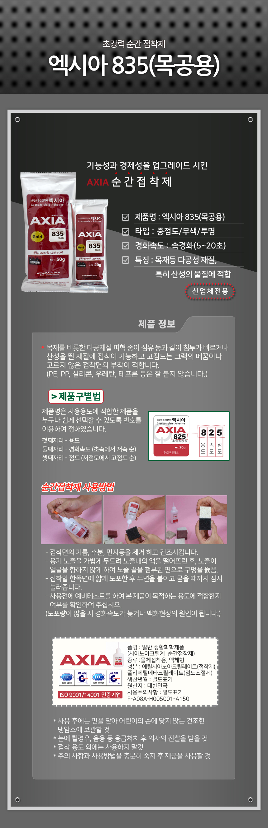 엑시아 835 목공용 초강력 순간 접착제 20g
