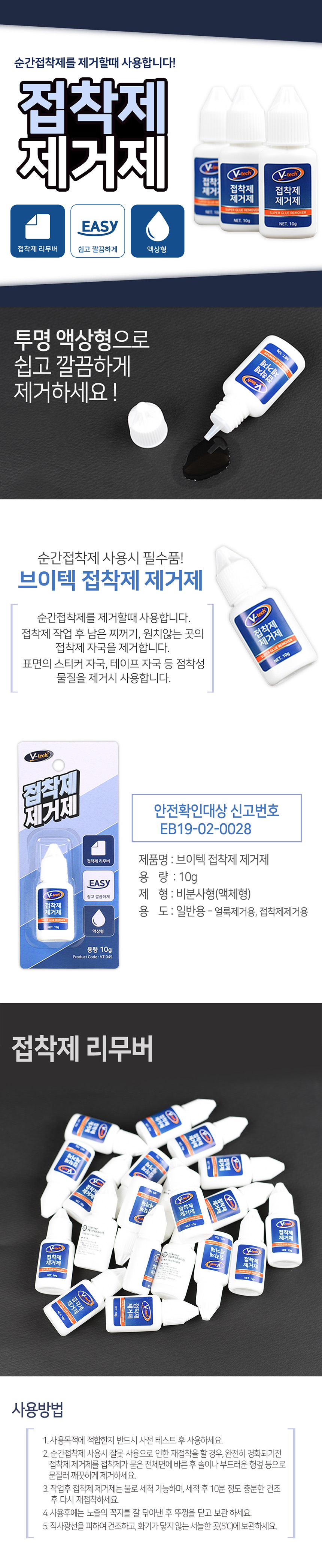 브이텍 순간 접착제 제거제 리무버 10g VT-045 테이프 접착제 자국 얼룩 잔사