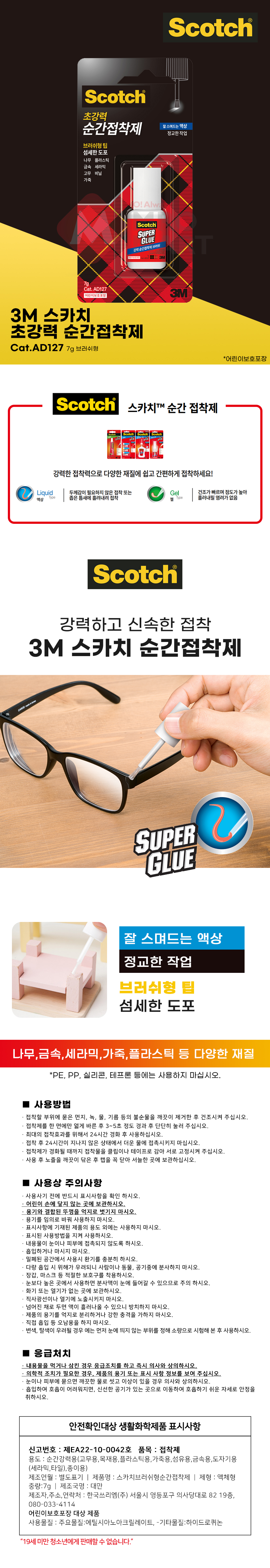 3M 스카치 강력 순간접착제 AD127 브러쉬형 7g
