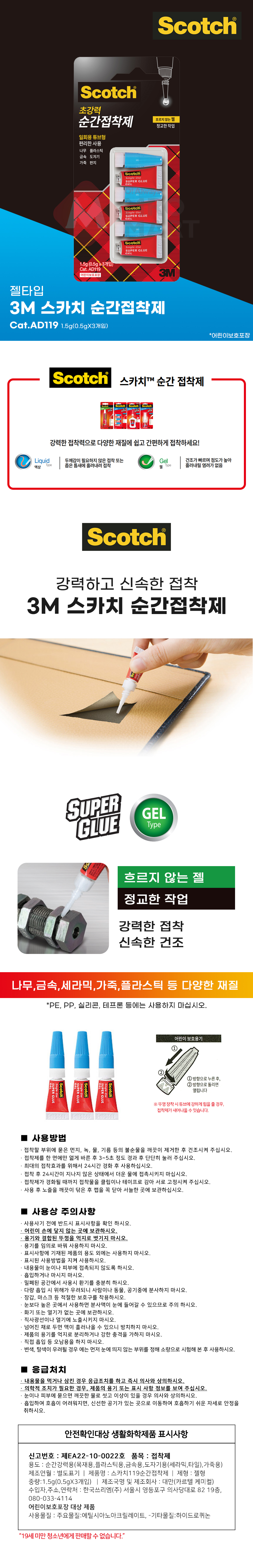 3M 스카치 강력 순간접착제 AD119 젤타입 0.5gX3개입