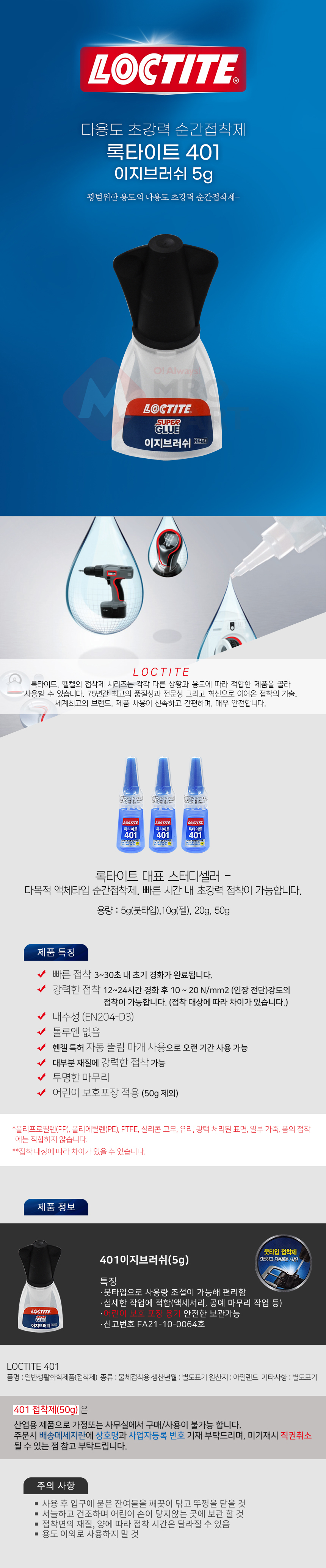 록타이트 401 이지브러쉬 5g 붓타입 순간접착제