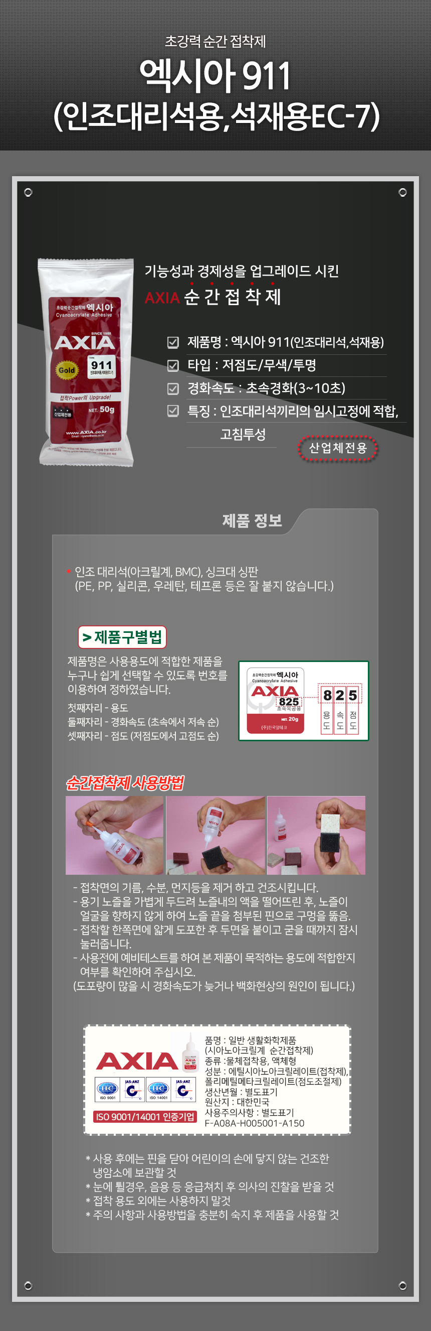 엑시아 골드 911 인조대리석 석재용 초강력 순간 접착제 50g