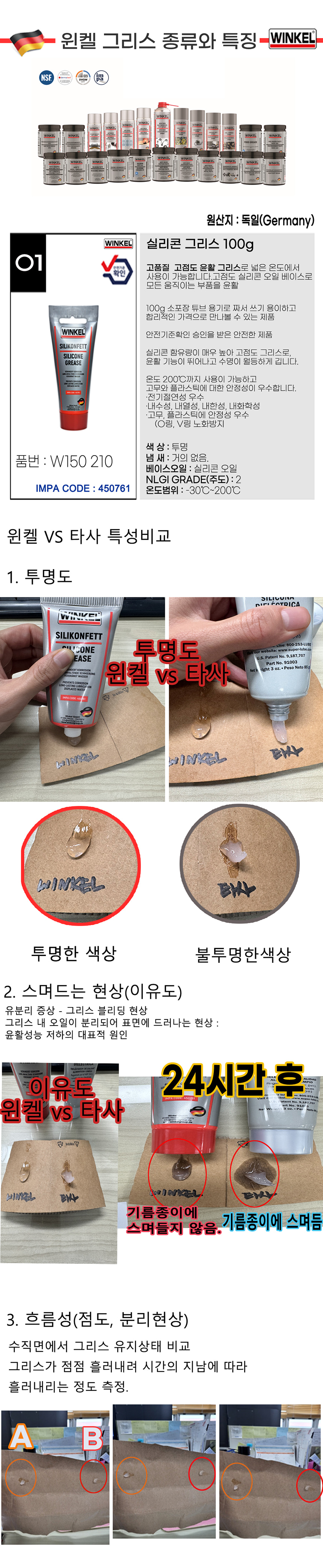 윈켈 실리콘 그리스 100ml 녹 방지제 구리스 고온 윤활제 차량용 공구용 금속용 에멀션형