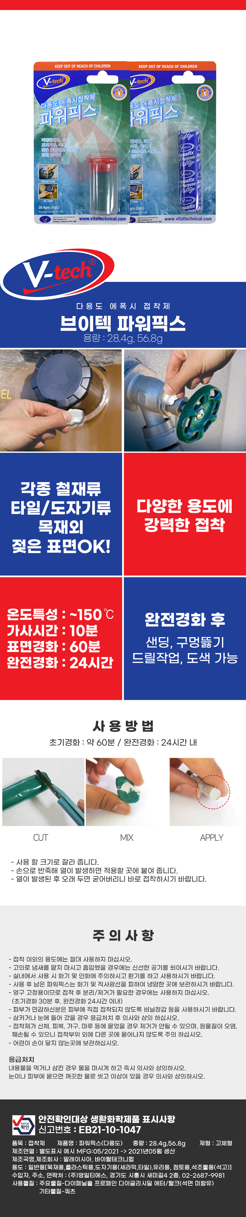 브이텍 파워픽스 다용도 에폭시 접착제 56.8g 퍼티 철재 타일 도자기 목재