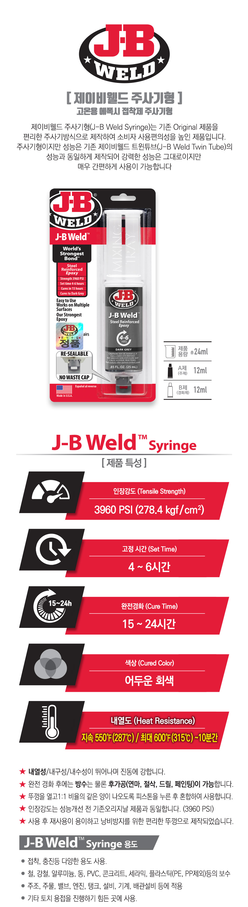제이비웰드 주사기형 24ml 고온용 주사기형 에폭시 접착제 50165