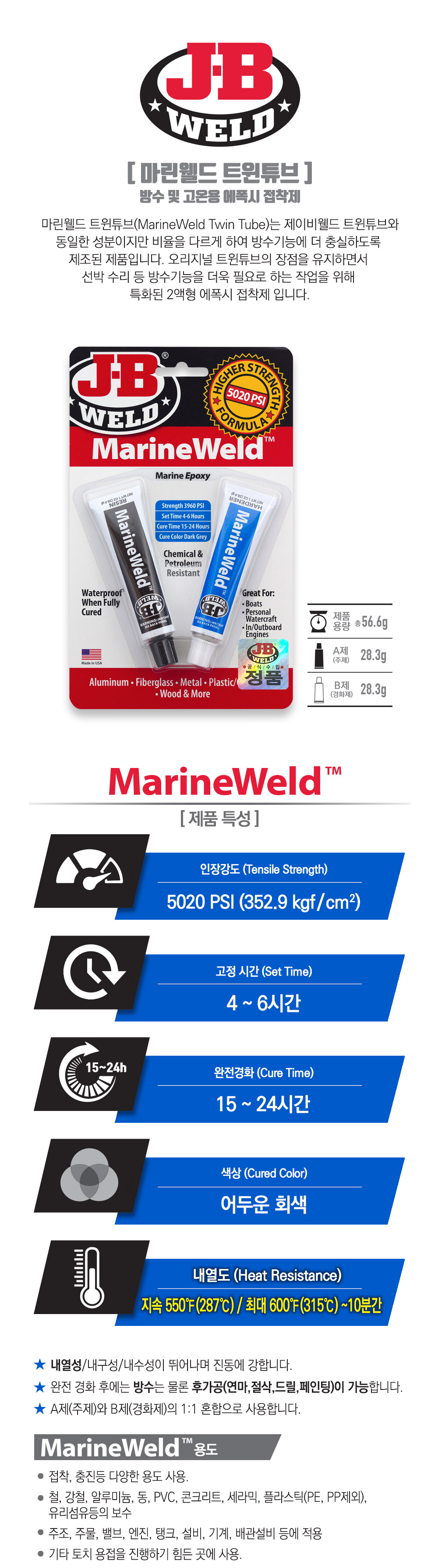 제이비웰드 마린웰드 트윈튜브56.6g 방수 및 고온용 에폭시 접착제 8272