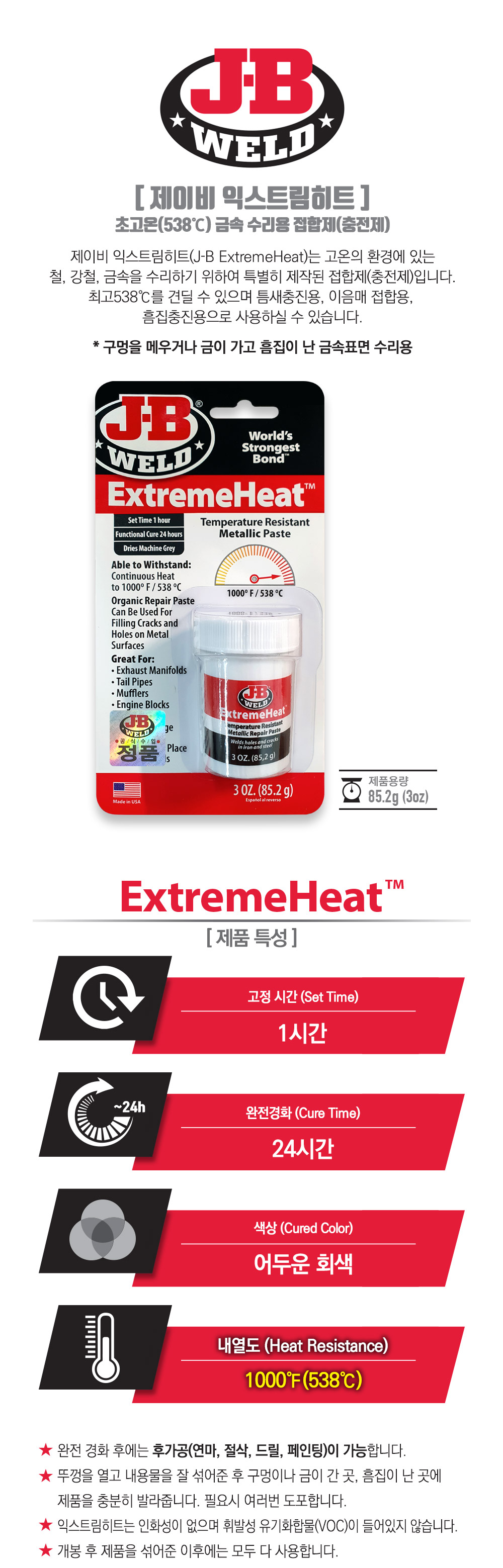 제이비웰드 제이비익스트림히트85.2g 고온 금속 수리용 접합제 37901