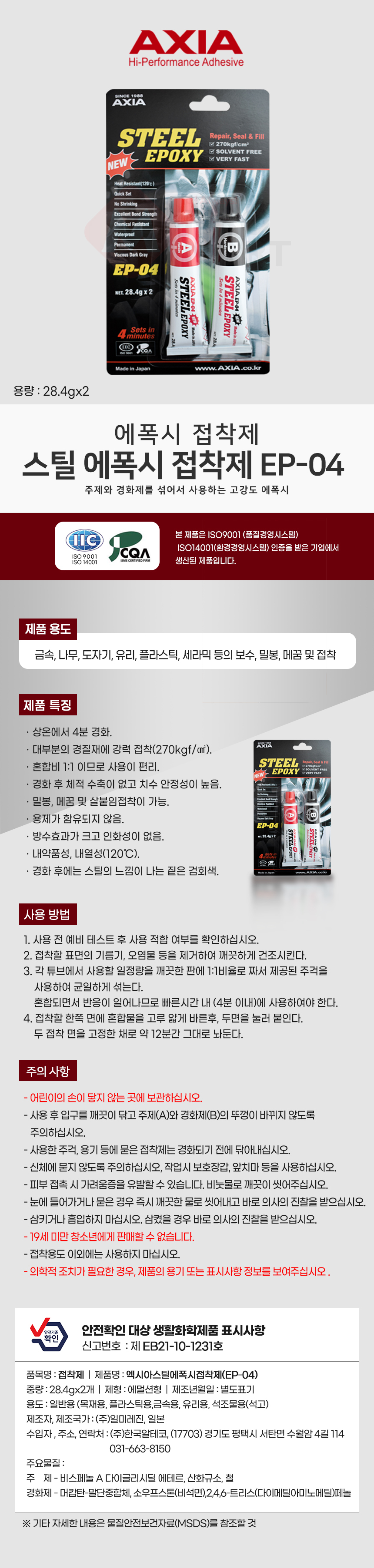 엑시아 스틸 에폭시 접착제 고강도 금속 본드 보수용품 EP-04