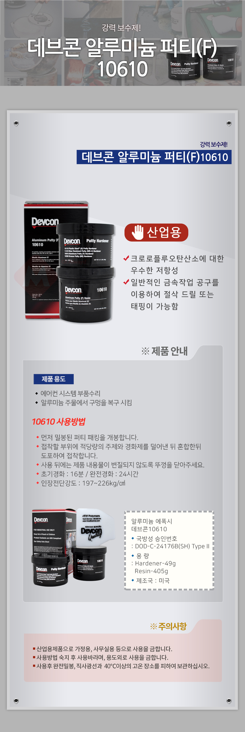데브콘 알루미늄 에폭시 퍼티 10610 접착체 보수제 강력 접착