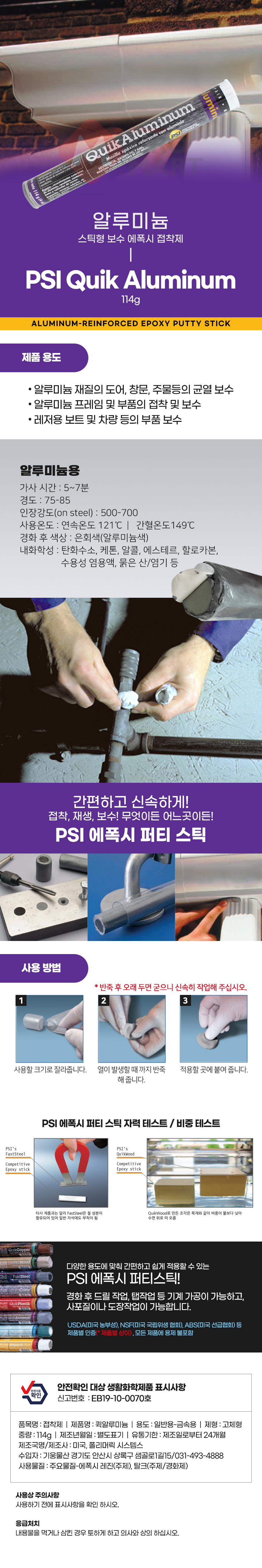 PSI Quik Aluminum 알루미늄용 에폭시 퍼티 스틱 에폭시접착제