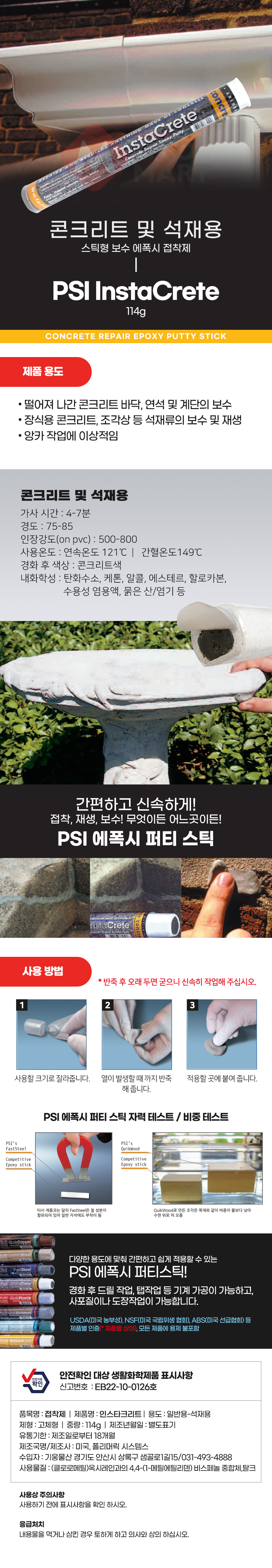 PSI InstaCrete 콘크리트용 에폭시 퍼티 스틱 에폭시접착제 계단,바닥,석재