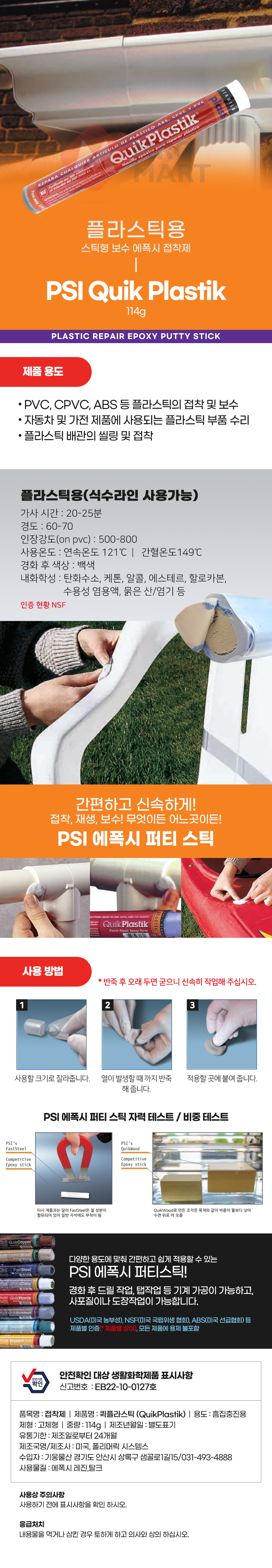 PSI QuikPlastik 플라스틱용 에폭시 퍼티 스틱 에폭시접착제 식수라인사용가능