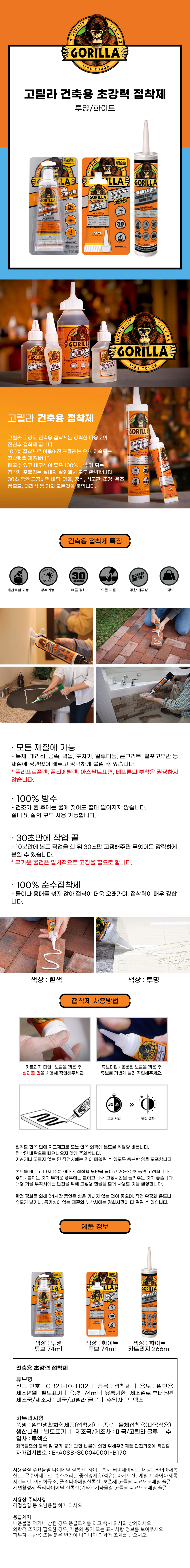 고릴라 건축용 초강력접착제 튜브형 74ml 투명