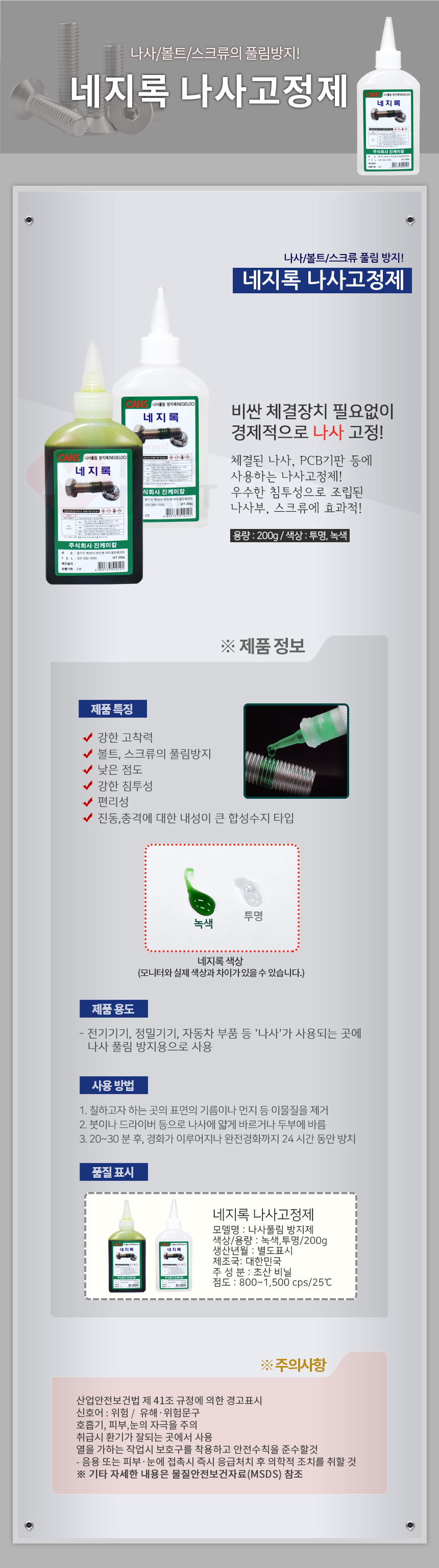 네지록 나사풀림방지제 볼트 너트 풀림방지 금속 밀봉 조립